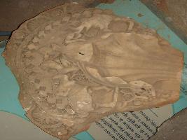 | Description / विवरण | Fragment of an independent sculpture, head part of a Parswanath sculpture having seven hooded snakehead which stands on the head of Jaina Tirathankara Parswanath, animals and celestial beings also are carved in this fragment. Floral designs also are carved on it. |