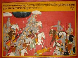 | Description / विवरण | Miniature painting based on Prithviraj Raso depicting Roysal Rathore fiercely attacking on Prithviraj. |
