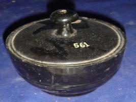 | Description / विवरण | Container, made of wood, having a lid where a tip is seen used to hold it. The container has round body and flat circular base. |