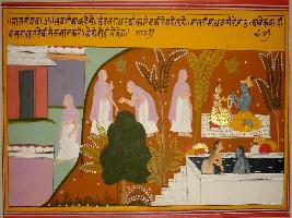 | Description / विवरण | Miniature painting based on Sanskrit drama Malti Madhav depicting on left Lawangika and Kamandki talking with each other and in the right side Malti and Madhav having bath together. It is an incomplete painting. |