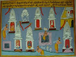 | Description / विवरण | Miniature painting based on Kashi khand depicting that when sage reached Kashi and praying god Ganesh, Vishnu and Mahesh and take bath in the holy river Ganga. |