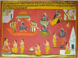 | Description / विवरण | Miniature painting based on Kashi khand depicting Vishnu coming to meet Dhruv in the upper part of the painting. The lower part depicted Dhruv meeting a Brahman then establishing a linga and worshipping it respectively from right to left. Above it meeting of Vishnu and Dhruv is depicted after which Dhruv went to Vishnu lok. |
