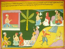 | Description / विवरण | Miniature painting based on Mahabharat - Rajdharma parva depicting the difference between Sin and Punya. It also depicts difference between dharma and adharma. |