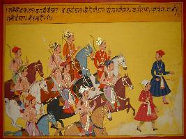 | Description / विवरण | Miniature painting based on Prithviraj Raso depicting the procession of the army of Jaichand. |