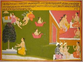 | Description / विवरण | Miniature painting based on Kashi khand depicting Bhagwan telling the story of Vishweshwar to his disciples and telling them that without worship of Shiv and without taking holy dip in Shivhar tank, no one can get moksha. |