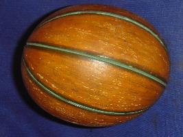 | Description / विवरण | Wooden model of kharbuja, painted in dark mustard yellow colour with green outline. Sections are highlighted with incised lines. |