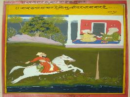 | Description / विवरण | Miniature painting based on Mullah-do-Piyaja depicting that the intensity of Chabuk on horse increase when a horse rider is riding a horse. The intensity is such that horse is sentences to death. |