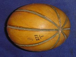 | Description / विवरण | Wooden model of kharbuja having smooth surface. It is of yellow colour and the sections are highlighted with incised lines coloured in green. Two halves are joined together with little space between them. |