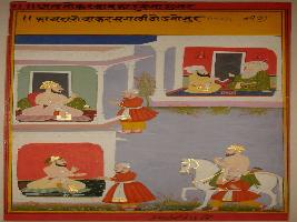 | Description / विवरण | Miniature painting based on Mullah-do-Piyaja depicting Mullah-do-Piyaja telling Akbar that good servants are always there to serve the lord. |