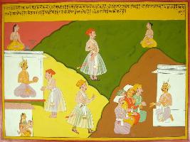 | Description / विवरण | Miniature painting based on Mahabharat - Rajdharma parva depicting the preception of individuals regarding best way of goodness. Some says it as exercise, someone says it a penance, someone says as sanyas and some one says it as silence. |
