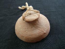 | Description / विवरण | This clay, object in having medium fabric and one hole on the upper portion. Lower portion in circular, concaved while upper portion in short circular knob shaped. It is wheel made. |