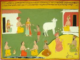 | Description / विवरण | Miniature painting based on Mahabharat - Rajdharma parva depicting Vedvyas is telling Yudhisthir that what Arjun says him was right and he shouldn t regret on past. |