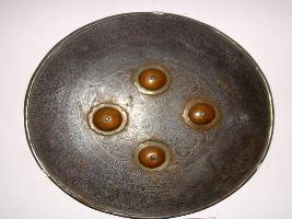 | Description / विवरण | Metallic shield designed with floral motives and has four phool. |