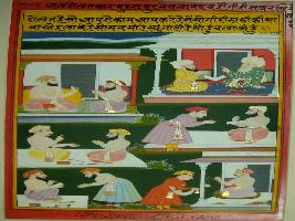| Description / विवरण | Miniature painting depicting Mullah-do-Piyaja telling that one who has money to do their own work by himself. But a sage who shows that he doesn t need anything, but he wishes getting dakshina in his heart. |