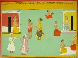 | Description / विवरण | Miniature painting based on Mahabharat - Rajdharma parva depicting the duties of king like serving his peoples punishing the culprit, gaining knowledge of Vedas, increase wealth etc. |