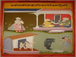 | Description / विवरण | On the painting Mullah says to Akbar about the dance of a bean when and little child are one who are my crazy to see it. |