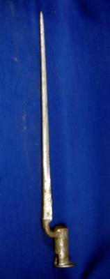 | Description / विवरण | Three faceted, long iron Sangeen bayonet , painted with silver colour. The colour is flaking off at some places. |