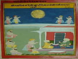 | Description / विवरण | Miniature painting based on Mullah-do-Piyaja. It depicts 4 nobles praying a holy illumination. In lower part, Mullah do-Piyaja is sitting with Akbar. |