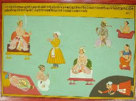 | Description / विवरण | Miniature painting based on Mahabharat - Rajdharma parva. Arjun is telling Yudhisthir that punishing the culprits in necessary for maintaining law and order. It is far the fear of punishment one would abstain himself from doing any crime. |