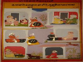 | Description / विवरण | Mullah-do-Piyaja telling Akbar that gate keeper of street can be compared to dog who goes house to house for food. |