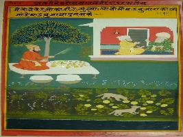 | Description / विवरण | Miniature painting based on Mullah-do-Piyaja. It depicts Mullah-do-Piyaja telling Badshah Akbar about funny moments of fruit seller. |