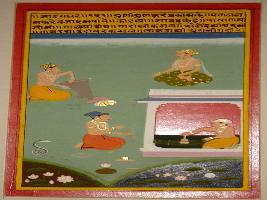 | Description / विवरण | Miniature painting based on Sarangadhar depicting a scene that passes the message that a qualified man always makes himself shine in any place just as the lotus flower blooms in the mud. |