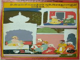 | Description / विवरण | Miniature painting based on Mullah-do-Piyaja depicting Mullah-do-Piyaja telling Akbar that if the Nawab is good then his people will also be happy. |