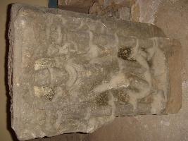 | Description / विवरण | Independent sculpture of four handed Shiva in standing position in pillared niche. Attributes from right below 1 in varada mudra 2 a trident 3 a snake. 4 a fruit probably . He is wearing a jata mukuta and adorned with jewels. Architectural designs are carved in both sides. |