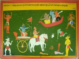 | Description / विवरण | Miniature painting based on Mahabharat - Vana parva depicting vigorous war between Krishna and Salva demon. |