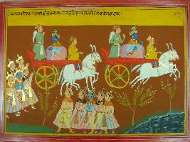 | Description / विवरण | Miniature painting based on Mahabharat - Sabha parva depicting Krishna going somewhere and Yudhisthir and four brothers are following him. |