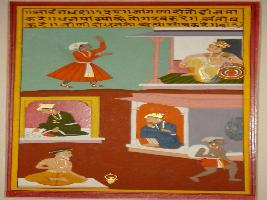 | Description / विवरण | Miniature painting based on Sarangadhar depicting that when man acquires many things then he feels proud, happy and satisfied, while other people keep thinking only. |