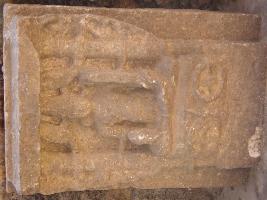 | Description / विवरण | Sculptured architectural fragment depicting Udhamendra in dhyana mudra in high relief in niche. His right hand in Udhamendra and left hand is holding a stick. Below the Tirathankara some floral designs are seen. |