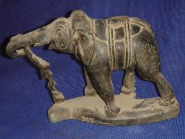 | Description / विवरण | Metal image of an elephant carrying a male acrobat by his legs with its trunk. They are installed on pedestal. |