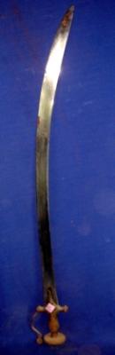 | Description / विवरण | Iron Sword having slightly curved blade and Alamgiri hilt with knuckle guard todedar . The hilt is rusted. |