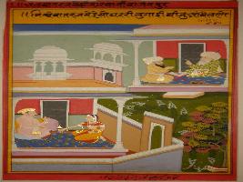 | Description / विवरण | Miniature painting based on Mullah-do-Piyaja. It depicts that it is wife who attends the husband well in house and serve husband whose heartedly. |