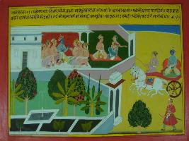 | Description / विवरण | Miniature painting based on Mahabharat - Vana parva depicting and Krishna saw the disaster done by Salbo. Then he prepared his army to fight with Salbo. |