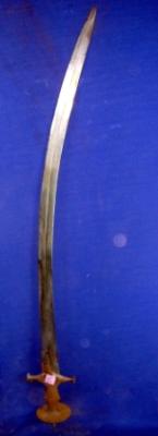| Description / विवरण | Iron sword having slightly curved blade with a groove nali and hilt without any decorations. The hilt is rusted. |