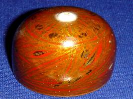 | Description / विवरण | Wooden dice of a chaupar, painted with lacquer paint with floral designs and has a green colour base. It is a dome shaped dice, at the top of which there is a tiny ivory fitting. |