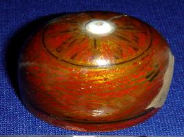 | Description / विवरण | Dome shaped wooden dice, painted with lacquer paint, having floral designs and a circular base of red colour, at the top of the dice there is a tiny ivory fitting. |