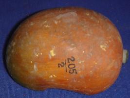 | Description / विवरण | Life size model of a mango, made of wood and painted in brown with a shade of green at the bottom. The colours are flaking off. |