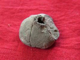 | Description / विवरण | It is a spherical shaped bead with incised lines across it. It has a perforation in it. |