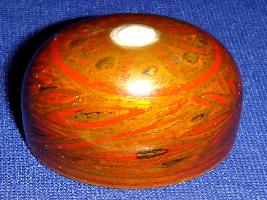 | Description / विवरण | Wooden dome shaped dice, painted with lacquer paint, having floral designs, with a circular base of yellow colour. At the top of dice there is a tiny ivory fitting. |