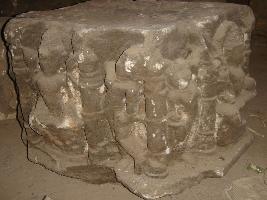 | Description / विवरण | Sculptured architectural fragment depicting a four armed deity, seated in lalitasana and flanked by a female attendant. On his right, a four armed seated in Lalitasana in pillared niche and flanked by a female attendant. |