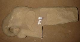 | Description / विवरण | Architectural fragment depicting an elephant head with forelimbs in seated position. |