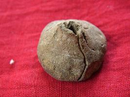 | Description / विवरण | It is a spherical shaped bead with incised lines accross it. It has a perforation in it. |