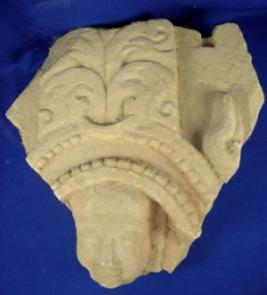| Description / विवरण | Fragment of a sculpture, only the face of a male deity is there. On the upper part of the head some floral designs are there. |