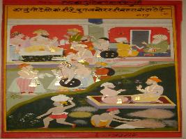 | Description / विवरण | Miniature painting based on Mullah-do-Piyaja. It depicts a man indebting something and a Kaji writing the deal on the paper. The lower left depict the man unable to return the debt and praying the lender for mercy. |
