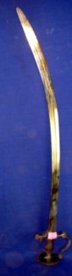 | Description / विवरण | Iron Sword having curved blade with groove nali and plain hilt with knuckle guard todedar . |
