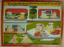 | Description / विवरण | Miniature painting depicting Mullah-do-Piyaja telling Akbar that one who recommends his sister in law for job, then her husband also serves him. |