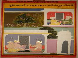 | Description / विवरण | Miniature painting based on Mullah-do-Piyaja. It depicts Mullah-do-Piyaja telling Akbar that a liar always swears after every word. |